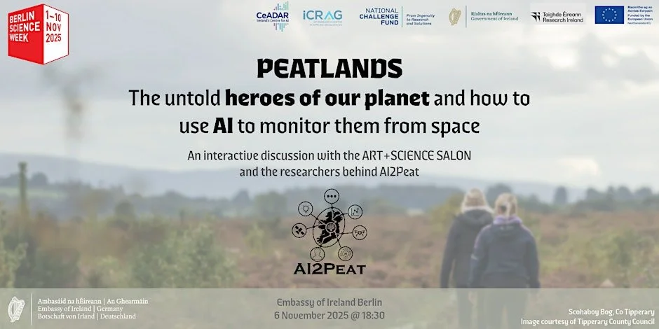 The project leaders join THE ART+SCIENCE SALON in the Irish Embassy in Berlin for a special interview to embark on a journey not only within the eco-hydrological/technological domains, but broaching topics such as evidence-based policy making, Ireland’s relationship with its land, nature-centric regulations, climate change mitigation, and much more!